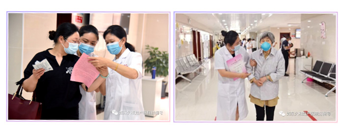 三、注重服务 由于参加体检的人员年龄偏大,行动有所不便,医院从各科室抽调人员,组建爱心服务团队,旨在让体检人员享受更加专业便捷的体检服务。体检期间,爱心服务人员来回奔走,遇到年龄比较大或者行动不便的人,马上上前搀扶,陪伴检查。期间,令人印象非常深刻的有这样一件事:一位奶奶坐在二楼等候椅上坐立不安,我们爱心服务人员主动询问是否需要帮助,原来奶奶是女儿带来体检的,女儿去做其他体检项目了,让奶奶先坐着等候她,奶奶非常想上厕所,但自己行动不便,不知道女儿什么时候回来,又不好意思麻烦别人,所以非常难受,爱心服务人员安抚她,并搀扶她去卫生间,之后又一对一带领她做完各项体检项目,奶奶非常开心,回家的时候,双手拉着爱心服务人员的双手,连声道谢,夸赞久和妇产医院的服务贴心。这样的场景有很多,久和妇产医院的爱心服务迎来了体检人员的一致好评。这正是如东久和妇产医院一直追求的优质服务。