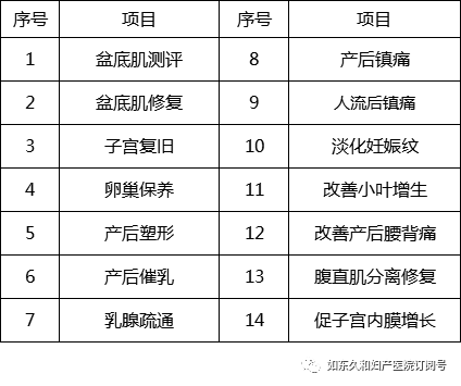 二、哪些人需要做盆底康复 1. 产后妇女(42天以后):无论是剖宫产还是顺产,产后42天都应进行盆底功能评估,并通过盆底康复恢复受损的盆底。 2. 计划妊娠者,尤其计划生二胎的女性:在妊娠前进行盆底功能评估,有利于孕前恢复盆底功能或学会正确的Kegel运动,预防或减少妊娠期或产后盆底疾病的发生。 3. 围绝经期女性:由于围绝经期雌激素水平的波动,导致盆底的功能状态发生改变,可通过盆底康复改善盆底功能。 4. 各种尿失禁患者:轻、中度压力性尿失禁(打喷嚏、咳嗽、跳绳、爬楼梯、快步走漏尿等)、急迫性尿失禁(尿频、尿急、尿失禁、夜尿次数多、听到流水声想小便等)、混合性尿失禁。 5. 膀胱过度活动症患者:尿频、尿急,伴或不伴尿失禁。 6. 尿潴留患者:产后、盆腔术后尿潴留。 7. 盆腔器官脱垂患者:轻、中度盆腔器官脱垂(阴道前、后壁膨出,子宫脱垂等)。 8. 排便障碍患者:便秘或粪失禁。 9. 盆腔痛患者:慢性盆腔痛、产后盆腔痛、腰腹坠胀酸痛、腰背痛等。 10. 阴道松弛或痉挛者。 11. 性功能障碍患者:性欲低下、性唤起障碍、性高潮缺失、性交痛等。 12. 产后子宫复旧不良、耻骨联合分离、腹直肌分离患者。 13. 子宫内膜薄造成的不孕者:促进子宫内膜增厚。 14. 卵巢早衰、围绝经期综合征患者:改善卵巢功能。 15. 尿生殖手术前、后需辅助治疗者:尿失禁、盆腔器官脱垂等术前和术后,改善术后盆底功能,减少复发。 16. 妇科手术如子宫切除术后者:预防和减少术后盆底功能障碍的发生。 17. 术后伤口疼痛、愈合不良、疤痕疼痛等。 (以上情况仅针对女性而言) 三、去哪做盆底康复 目前,如东久和妇产医院拥有先进的盆底康复治疗仪,有经验丰富的妇产科医生指导,这些盆底疾病都在这里得到治愈或缓解。 四、如东久和妇产医院盆底、产后康复项目