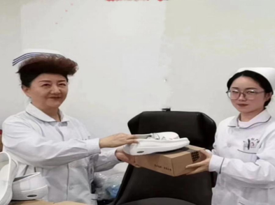 顾承红院长讲话,感谢护理人员在医院建设和发展中作出的成绩和贡献。 为问候护理人员,医院向各位护士发放了护士鞋,各科室合影留念。